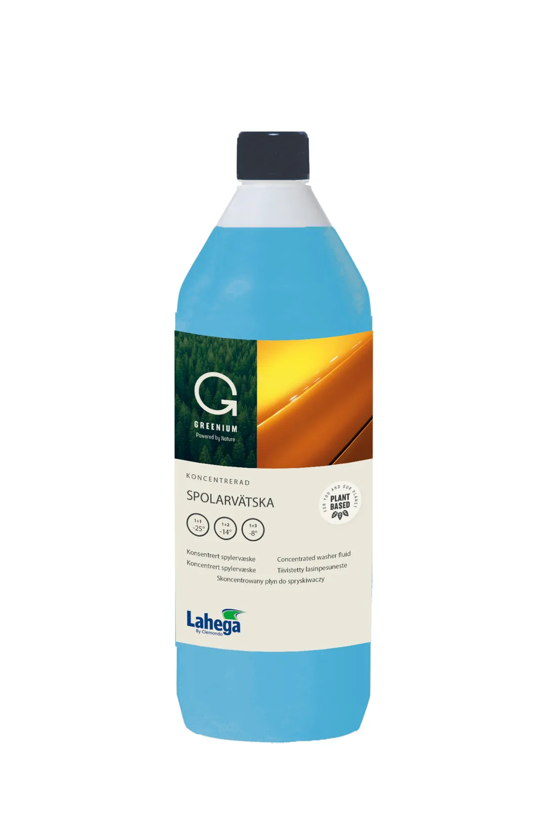Lahega Greenium spolarvätska löser effektivt upp vägsalt, trafikfilm och andra föroreningar på bilrutan och strålkastarna. Innehåller biologiskt baserad etanol; därför låga klimatutsläpp. Spolarvätskan skadar inte billack, torkargummi, stripes eller aluminiumlister. Ger en frisk och fräsch citrondoft. Fryspunkt i koncentrat -50°C. Produkten är svenskproducerad.