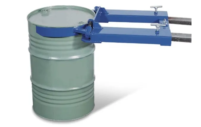 Klämman stängs automatiskt när gaffeltrucken lyfter fatet.