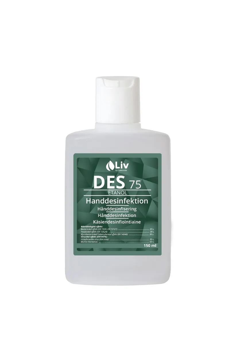 Etanolbaserad handdesinfektion med en alkoholhalt på 75 vol%. Den används i koncentrat för att effektivt förebygga och förhindra mikrobiologisk smittspridning (bakterier, svamp, virus) via händer. Tillsats av glycerin och propylenglykol verkar som mjukgörare och förhindrar uttorkning. pH 6-9.